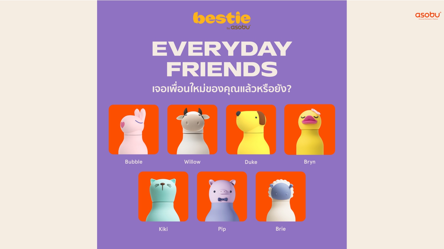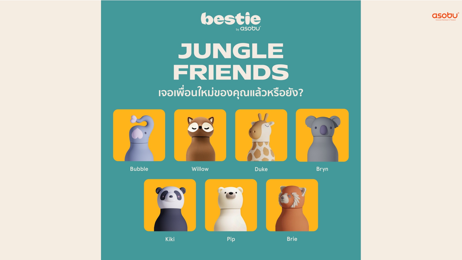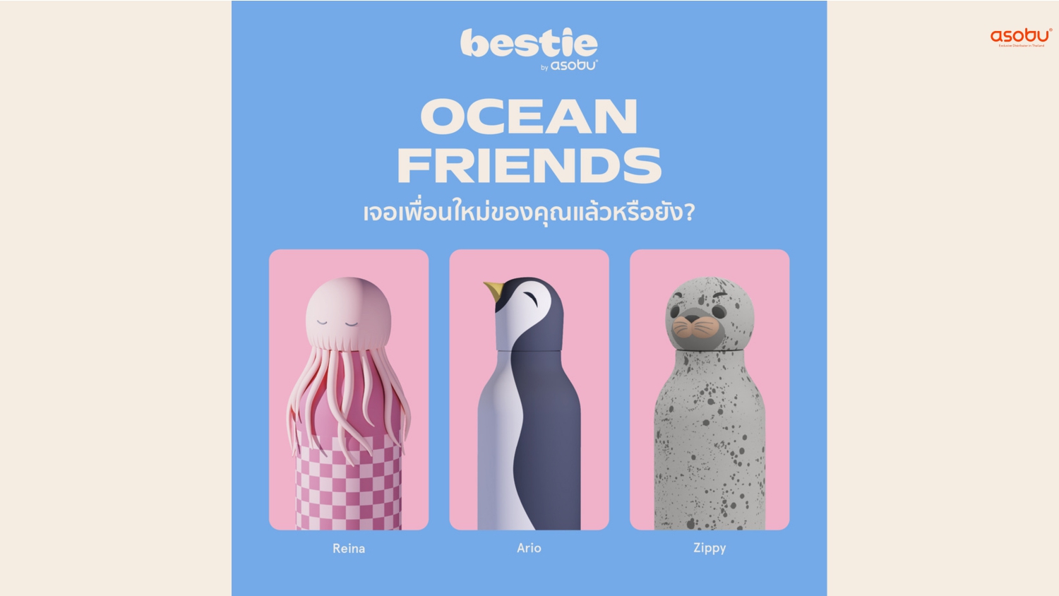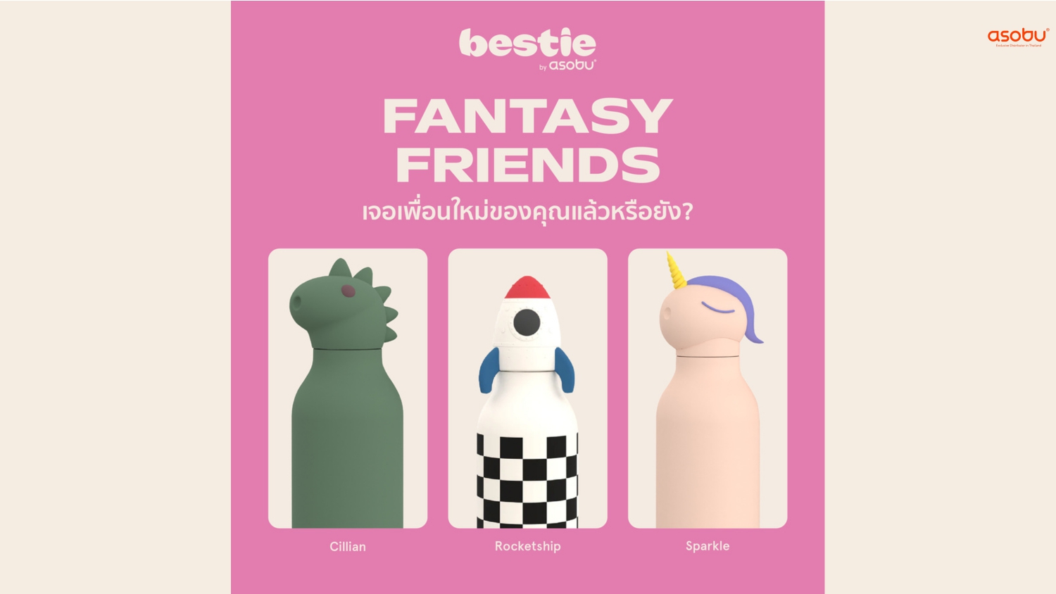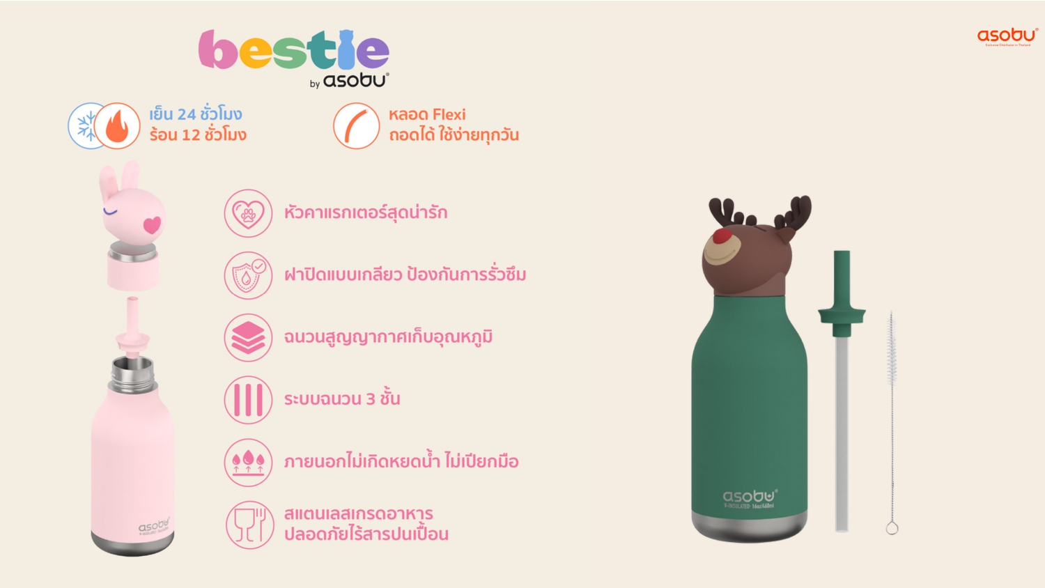 ❤️Asobu Character Bottle – ขวดน้ำสแตนเลสพร้อมซิลิโคน 16 OZ.
